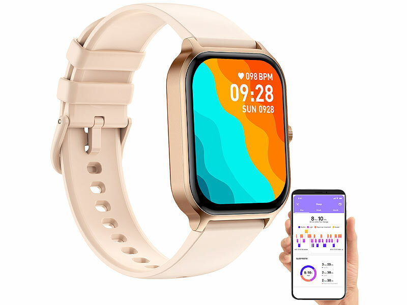 Ihr smarter Alltags-Begleiter: Diese elegante Uhr bietet eine umfassende Anzeige Ihres Fitnesslevels. Zudem bietet sie bequemen Zugriff auf zahlreiche Apps und Funktionen direkt an Ihrem Handgelenk, dank welcher Sie Ihr Smartphone ab sofort in der Tasche lassen können.Intelligente Fitnessfunktionen: Ihre Smartwatch zeigt Ihnen über einen optischen Sensor Ihren Blutsauerstoffgehalt, die Herzfrequenz und den Blutdruck. Beim Sport zählt sie Ihre Schritte. Und mit Trainingsmodi für 100 Sportarten verfolgen Sie detailliert Ihre Trainings-Fortschritte und -Erfolge - ob beim Laufen, Radfahren oder Fußball.